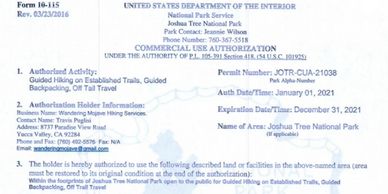 . Set the cost of the permit at a flat rate of 6 per permit. Find your next adventure. Logistics of backpacking in Joshua Tree.