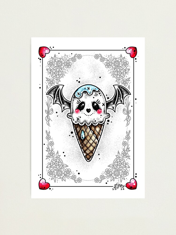 Ghost Bat Ice Scream Cone Cute Traditional Tattoo Flash Photographic Print For Sale By Ellamobbs Redbubble